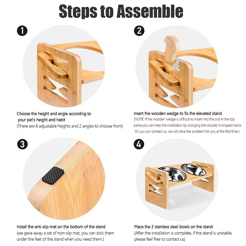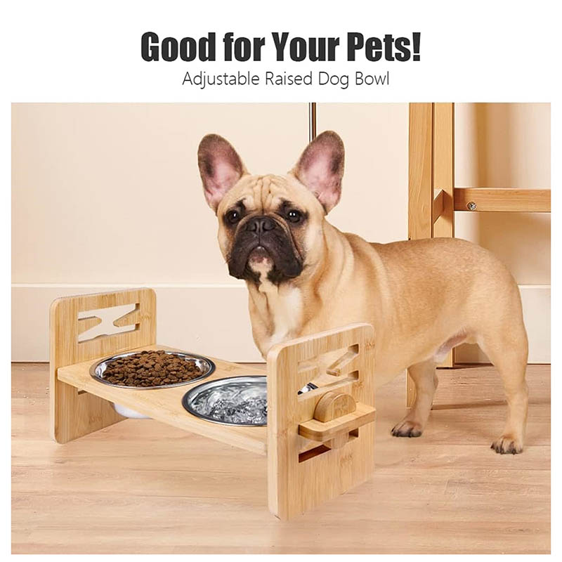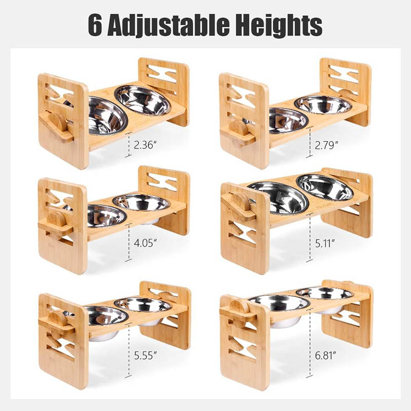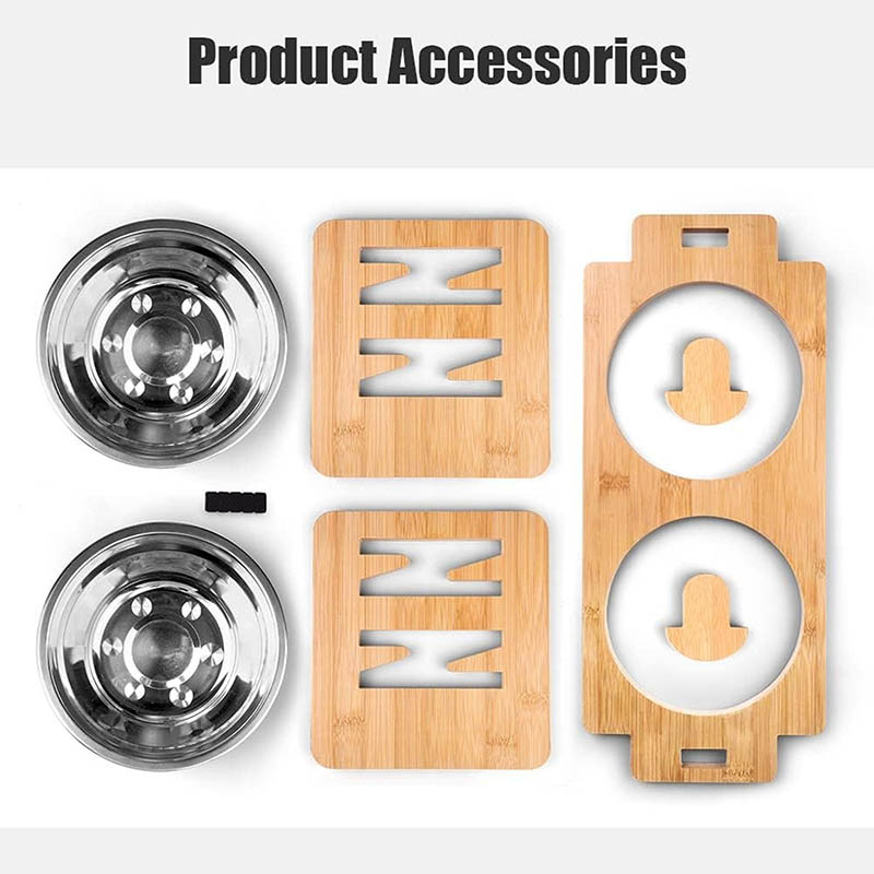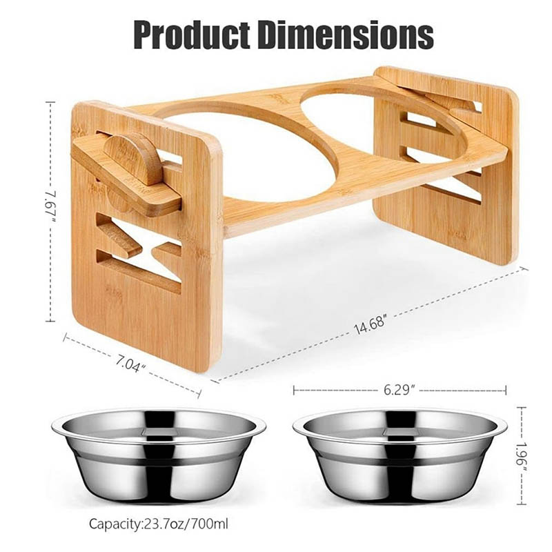 【Sturdy & Easy To Clean】Natural material workmanship provides the elevated dog bowl with well-finished corners and a smooth surface; Two stainless-steel bowls are rust-resistant and dishwashers safe for easy cleaning and maintenance