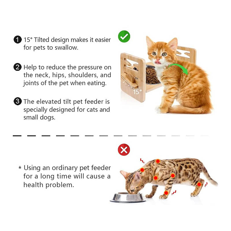 【Easy Swallowing With 15°Tilted Platform】Compared to the traditional pet bowls, our raised dog bowl’s 15-degree-tilted-angle is extremely helpful to promote digestion, reduce bloating and neck strain while feeding