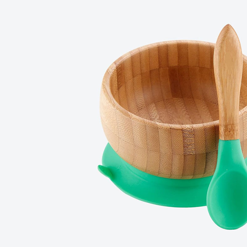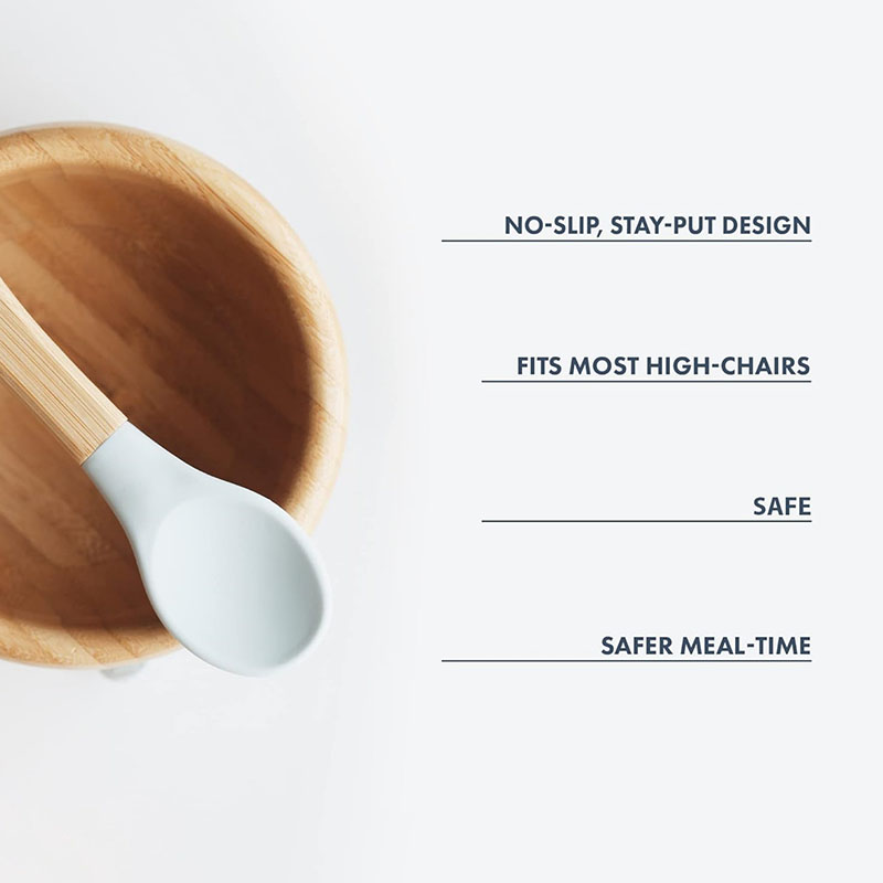 MODERN & STYLISH DESIGN: The sleek, contemporary design of our bamboo bowl fits seamlessly into any kitchen decor. Included with the bowl is pure silicone spoon, which are gentle on your child's gums and teeth while being easy to grip for little hands
