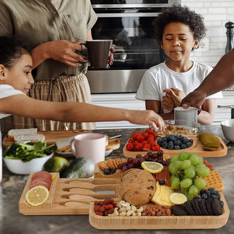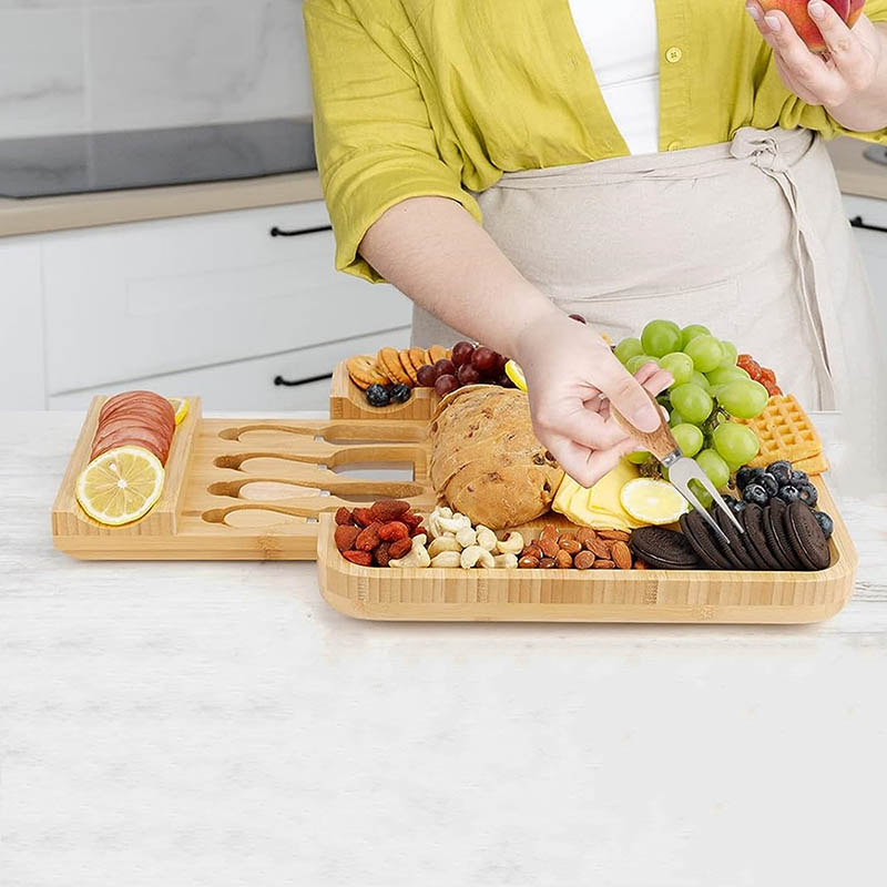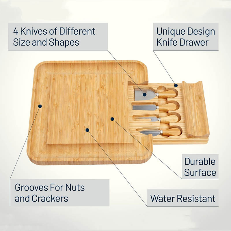 EASY MAINTENANCE: Cleaning and maintaining this premium bamboo cheese board is a breeze. Its eco-friendly design ensures that it's easy to clean while also being a responsible choice for the environment. With its splinter-free surface and grooves for crackers, it's designed with practicality in mind. Enjoy long-lasting use for all your entertaining needs.
