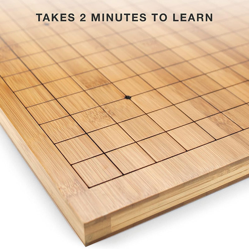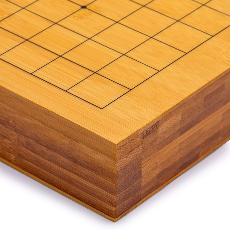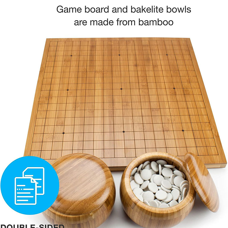 Smooth polished bamboo Go game board featuring engraved grid lines & durable melamine stones.