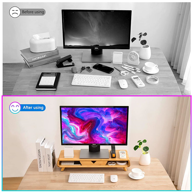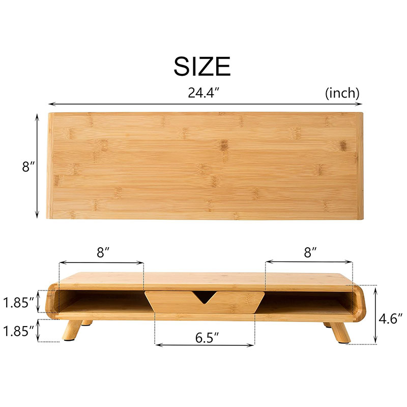HIGH-GRADE & ECO-FRIENDLY - 100% high-quality solid bamboo products. This monitor stand riser is naturally pollution-free. Special arc-shaped corner design protects your family and children from injury. Environmentally friendly and odorless characteristics bring you and your family a healthy home and office environment