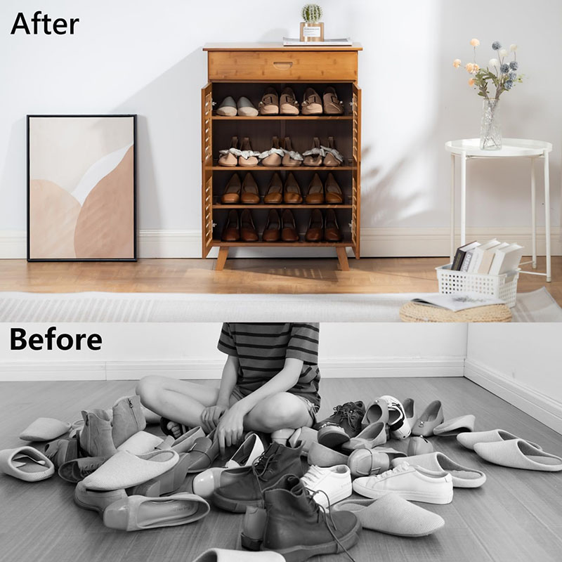 Bamboo Material - Our shoe storage cabinet is made of premium bamboo material, it is sturdy, durable and waterproof. It can match an extensive range of home decor styles - from modern to traditional.