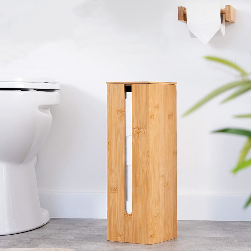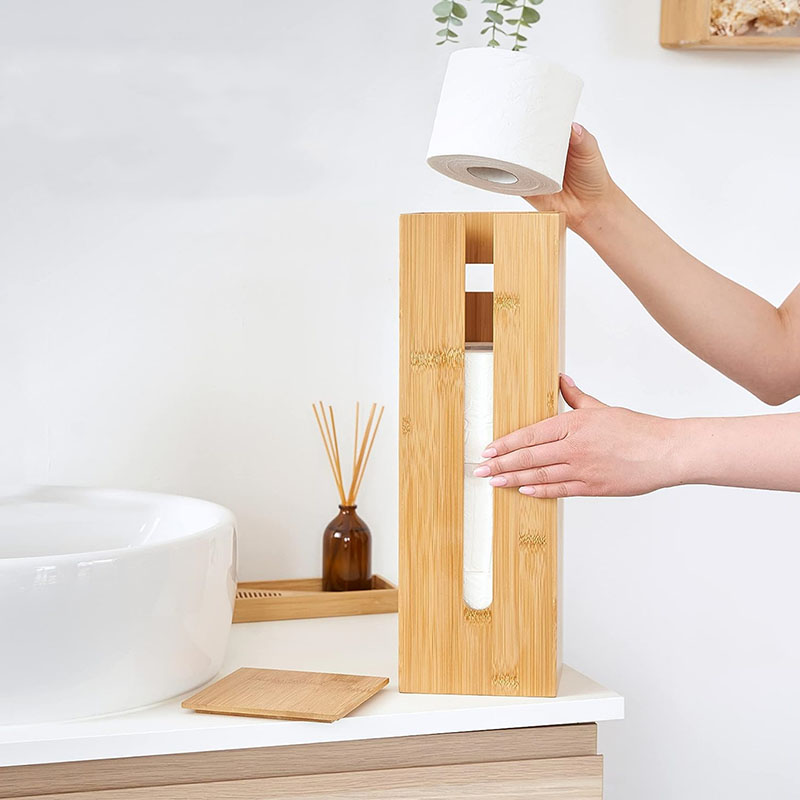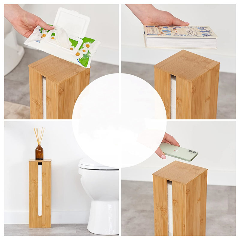 Fits 3 Toilet Rolls: The bamboo toilet paper storage box can stack up to 4 toilet rolls at a time. The wooden holder is an ideal bathroom accessory to keep your space tidy