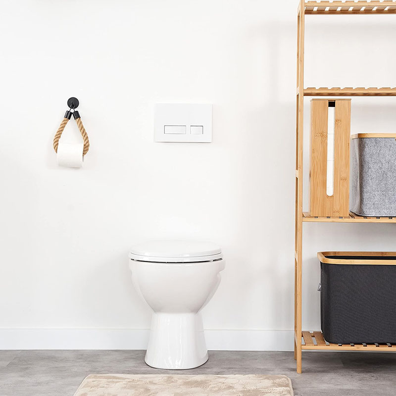 Compact Design: The toilet paper storage basket features a slim and minimalist design that can easily fit in every corner of your bathroom. The bamboo holder also has a side recess for a quick view and change of rolls