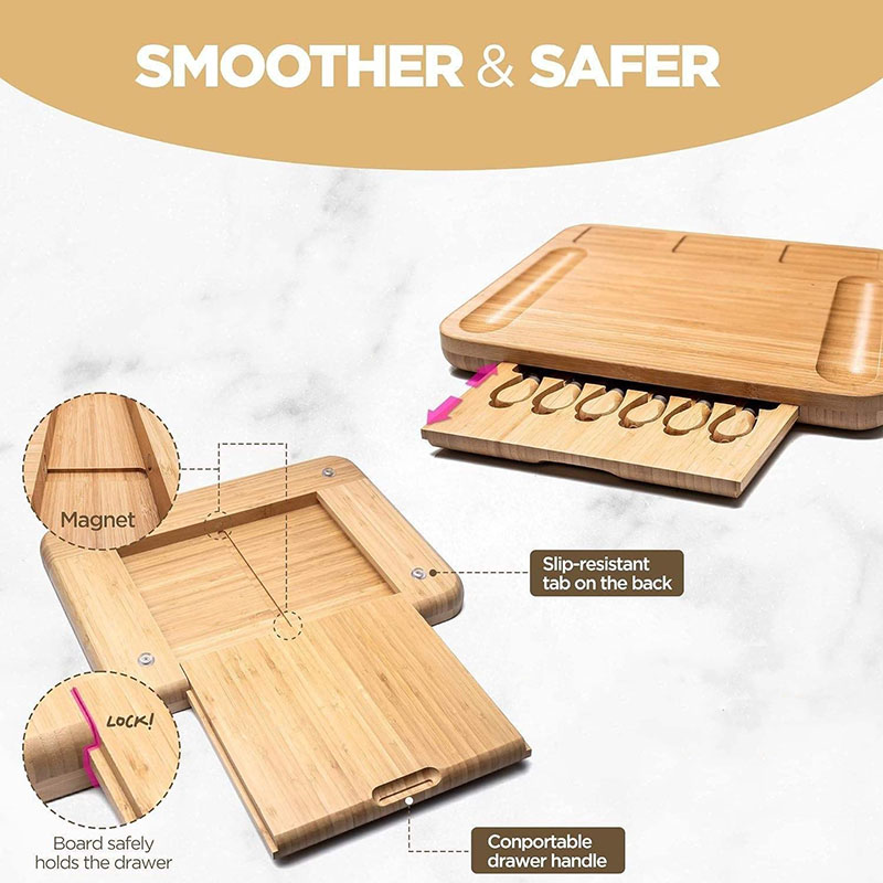 Smart Storage Design charcuterie boards accessories Features side grooves for crackers, a hidden side drawer with 6 stainless steel cheese knives/forks, and a travel friendship lid for portability. Perfect for gifts baskets for adults or house warming gifts new home