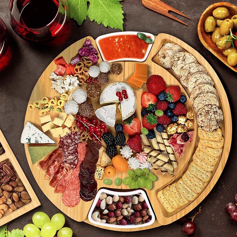 Charcuterie boards are an art form. You can design a unique and gorgeous platter for any festivity. Consider our bamboo cheese board a blank canvas on which you are the master artist creating the perfect ensemble of meats, cheeses, veggies, crackers, fruits, and chutneys to please any audience. Our cheese board open up a world of possibilities