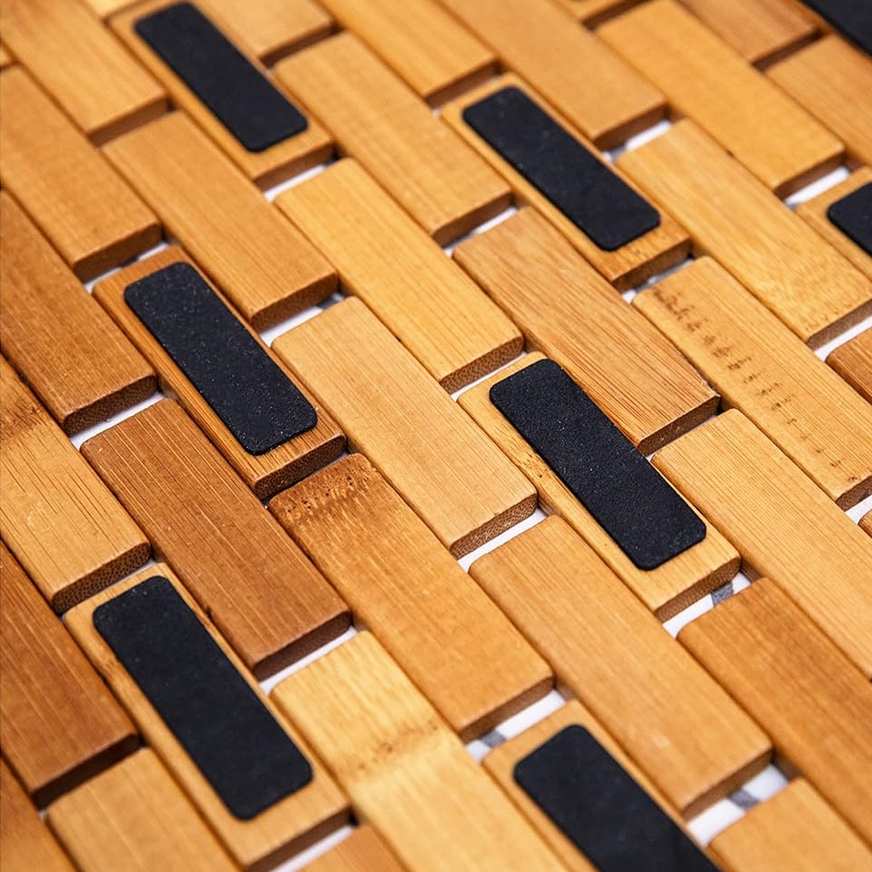 Natural Bamboo Material – Crafted from sustainably sourced bamboo, this bathmat is kiln-dried to resist warping, cracking, and shrinking, ensuring long-lasting durability compared to plastic, rubber, or fabric floor mats. Perfect for enhancing your bathroom decor or as a stylish addition to your bathroom accessories collection.