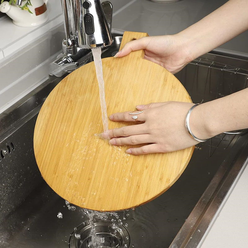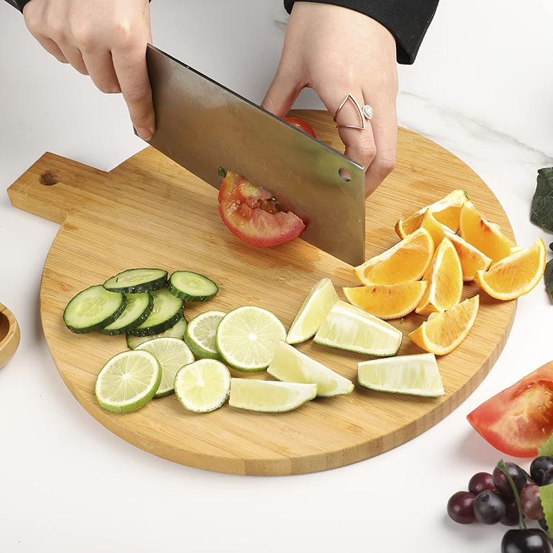 Product Inclusion: You will receive a round bamboo cutting board with a handle. This is a practical wooden board that serves both as a cutting and serving board, adding convenience to your kitchen
