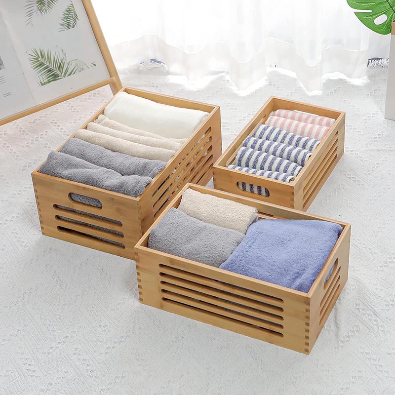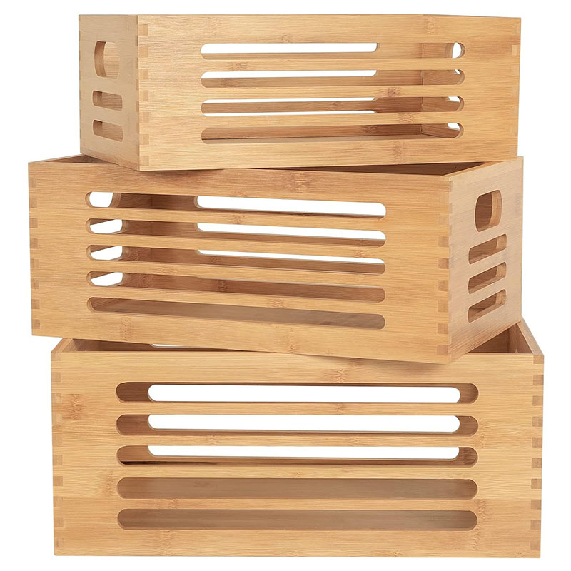 Combining natural bamboo and wood, these storage bins are smooth yet pretty, sturdy and durable enough for long lasting use.