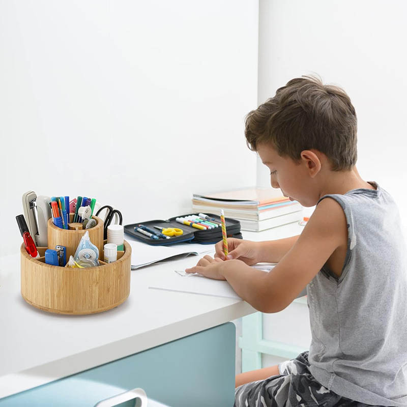 Multipurpose Desktop Organizer: This spinning organizer is for perfect use in the classroom, living room, office supplies, cosmetics and kitchen; Organized your pens, scissors, TV remote, utensils, paintbrushes, etc.; Keep your desk clear