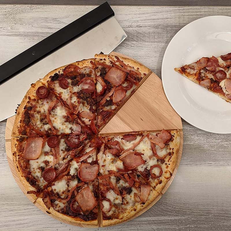 Easy to Clean: The bamboo pizza cutting board is smooth and durable, and can be cleaned and dried regularly. Simply rinse with water or wipe with a damp cloth, and let it dry