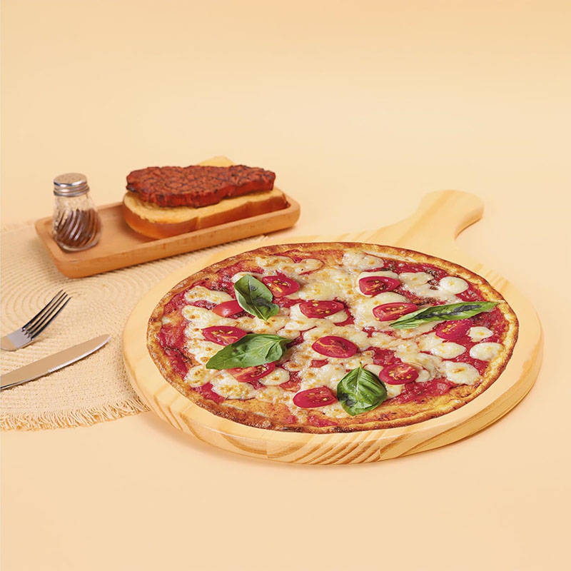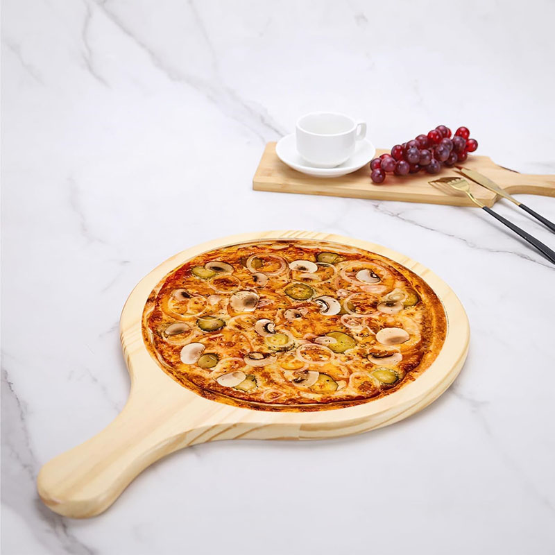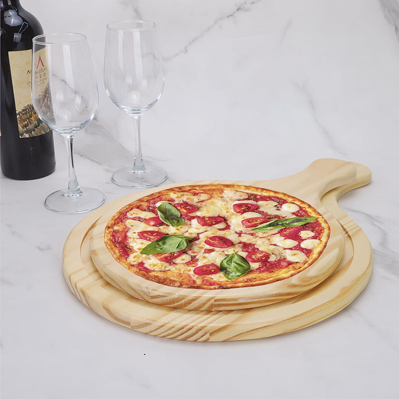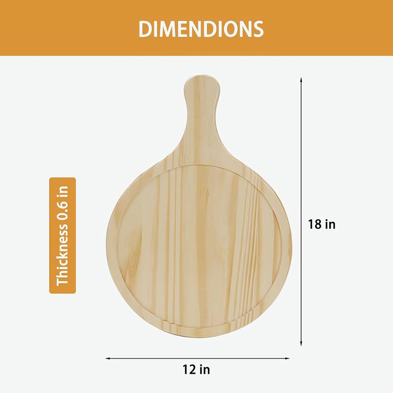 Package Includes: Round shape fits pizza bread, steak, etc., offering the sufficient quantity for a family's usage; There is an easy grip handle on the wooden serving tray boards; The twine of the round cutting board can hang the wooden board, and to keep your countertops tidy and uncluttered