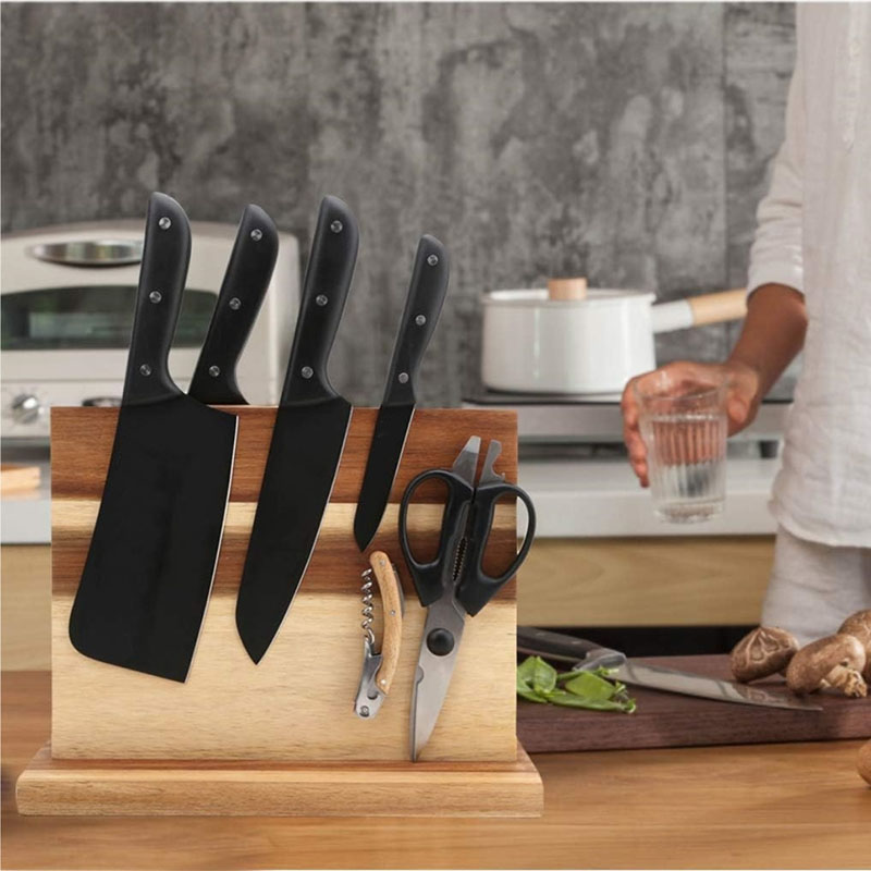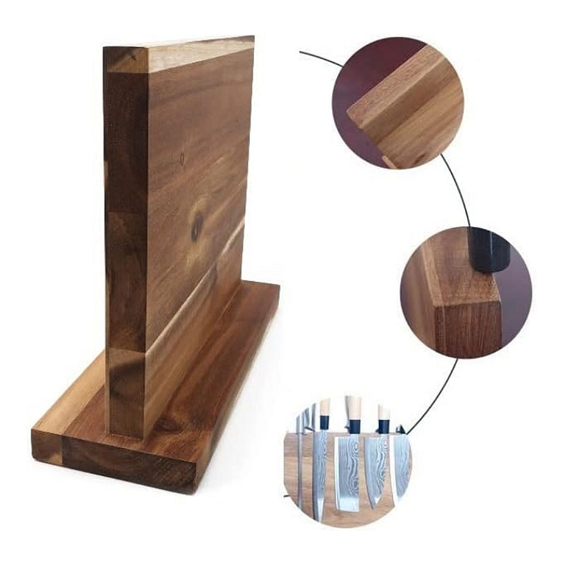 Double-Side Magnetic Knife Block - A double-sided magnetic design can easily hold up variety knives and tools such as: cleaver knife, chinese knife, chef knife, santoku knife, bread knife, kitchen shears, sharpening rod, steak knife and keep your kitchen countertop neat and organized.