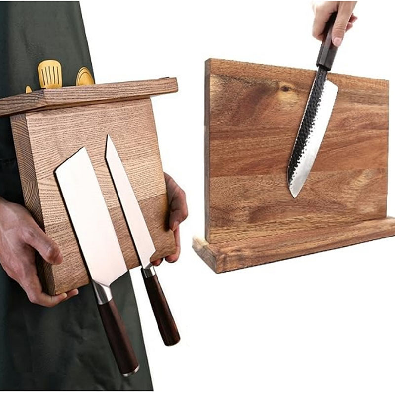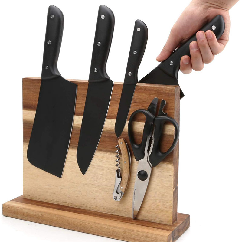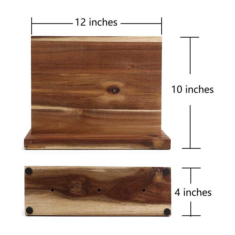Natural Acacia Wood Knife Storage- Acacia wood is the symbol of durability and solidity, with a beautiful pattern texture that complements any kitchen. Acacia wood is also unbelievably easy to clean & maintain, the smooth surface keeps the knife blade sharp with no nicks or blunting.