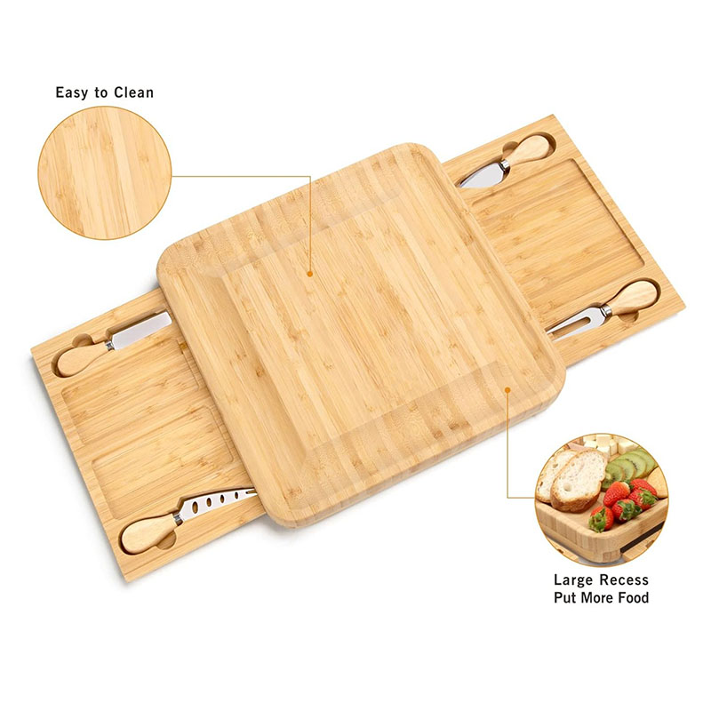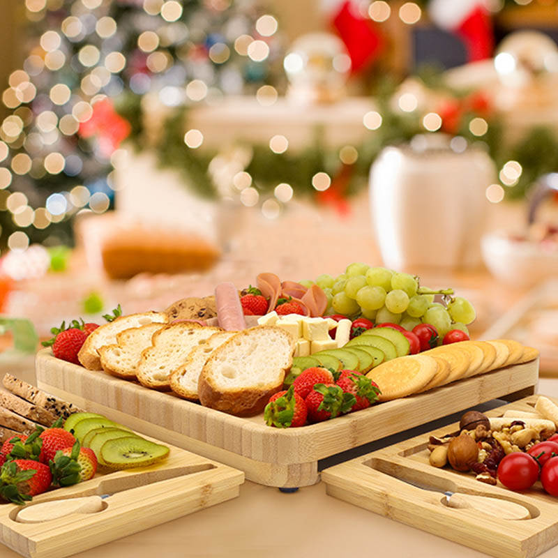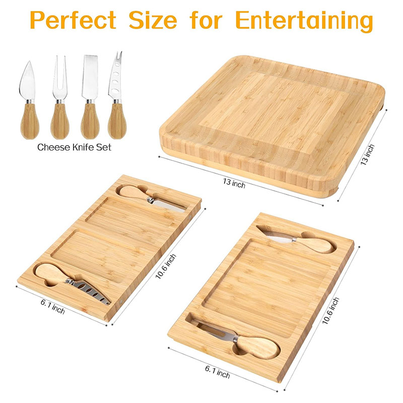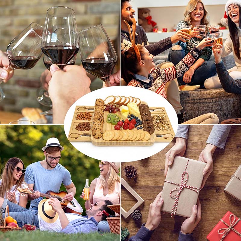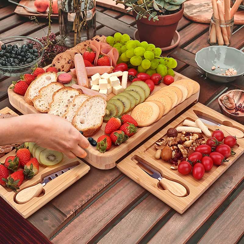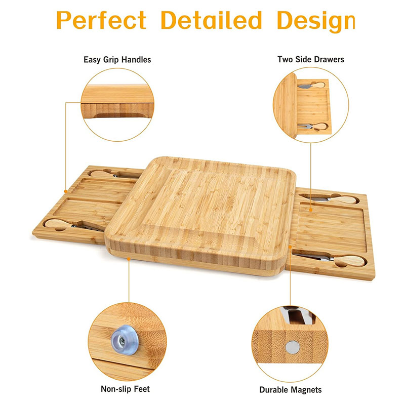 FREE CHEESE ACCESSORIES - There is a slide-out magnet hidden drawer on both sides of the charcuterie board with cheese knives and cheese picks thus reduce trouble of additional purchase.
