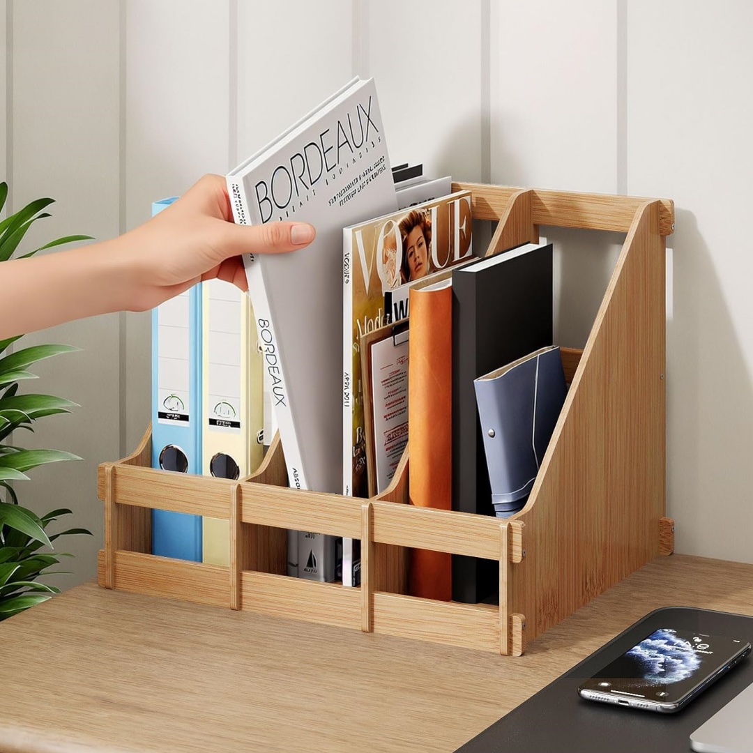 Desktop File Organizer: This file organizer for desk is a perfect choice to organize magazines, books, mail, catalogs, reports, file folders etc. Keep your desktop neat.