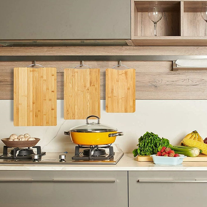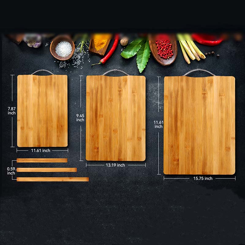 Premium Material Selection: Made of selected bamboo material, we all know that bamboo is tough and will not break and bend. Thus our bamboo cutting board is more sturdy and durable to use. Metal handle design, easy to carry and hang storage, save your kitchen space.