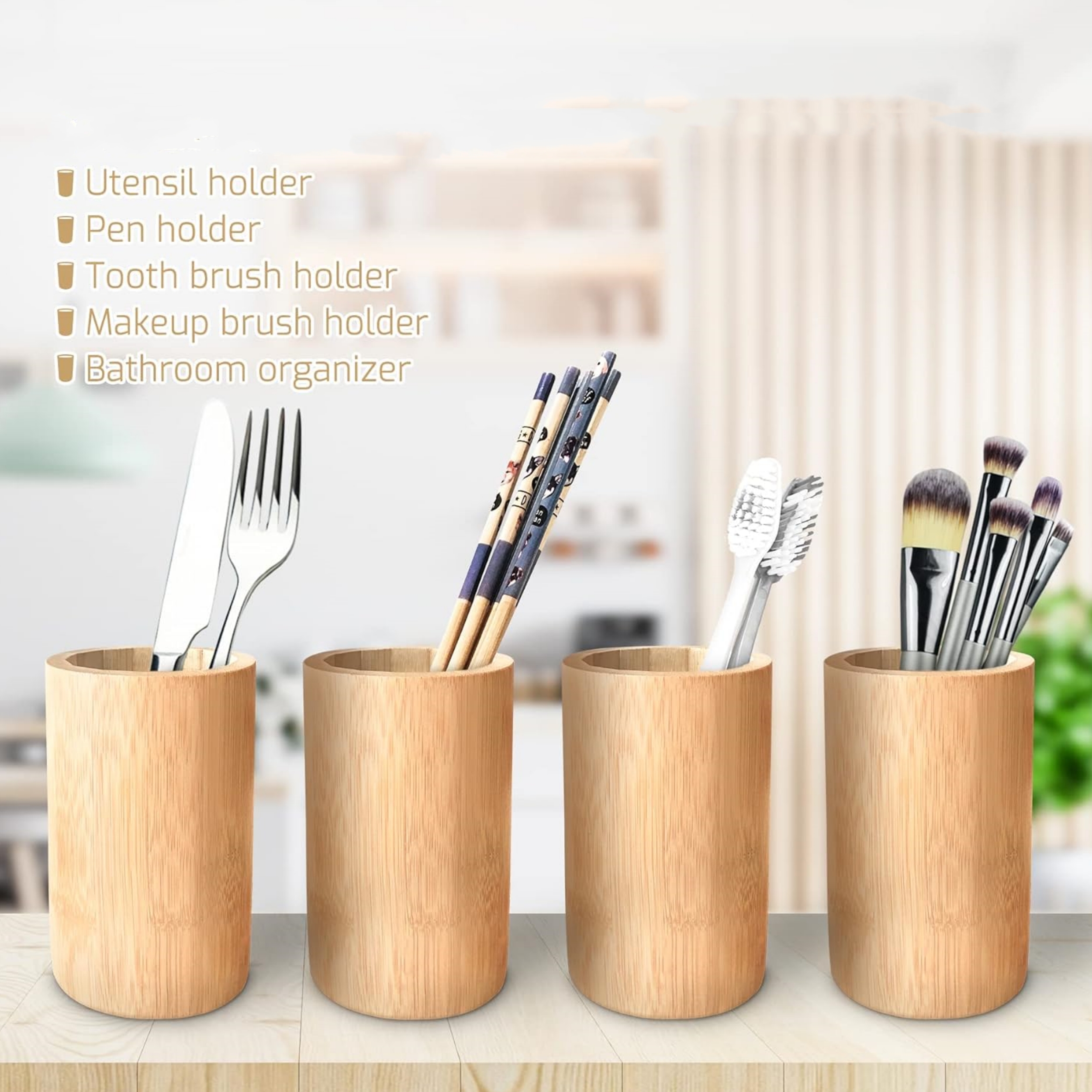Both Practical and Decorative: bamboo makeup holders are not only suitable for storing office necessities, such as pens, pencils, highlighters, scissors, note pads, solid glue and more, but they can also add a sense of rusticity and elegance to your desk, both practical and decorative