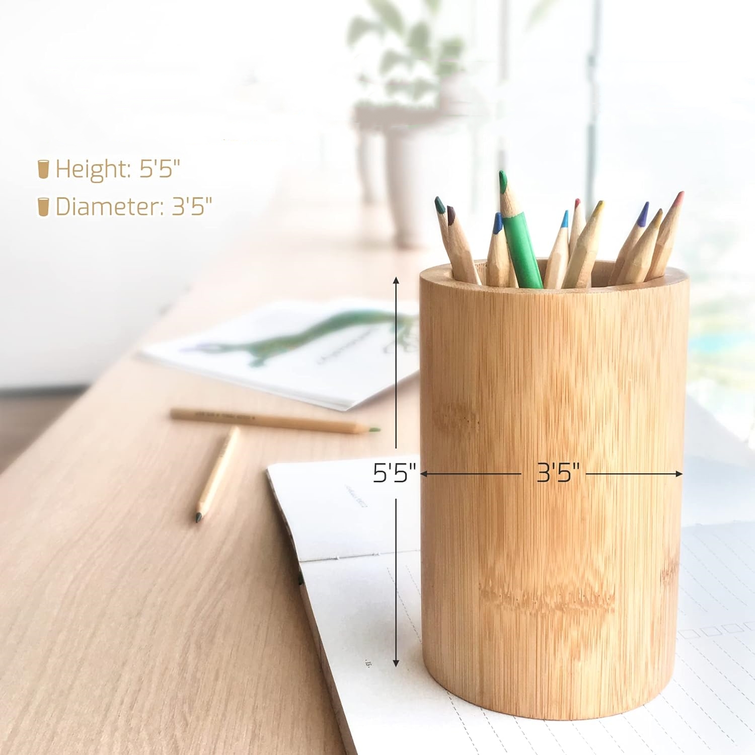 Wide Range of Application: bamboo pencil holders are ideal for holding school and office supplies, but can also be applied as containers to help you accommodate many other items, such as makeup brushes, art brushes, kitchen utensils, combs, etc.; In addition, you can also put some dried flowers inside to make beautiful home decorations