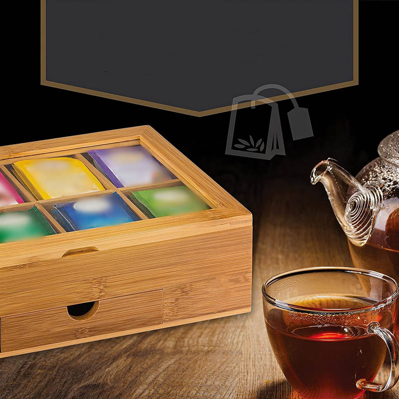 VERSATILE STORAGE WITH EXTRA DRAWER: Beyond tea, this organizer includes a pull-out drawer for additional storage, perfect for holding tea spoons, sweeteners, or extra tea leaves. Use it for herbs and spices, too—ideal for those who enjoy a well-organized and versatile storage solution