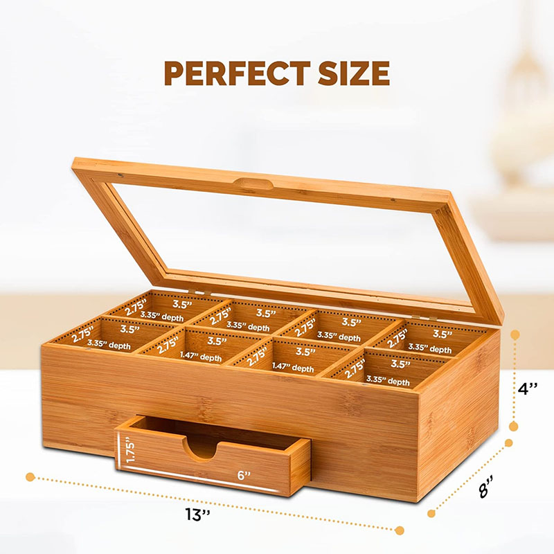 ELEGANT DISPLAY WITH ACRYLIC WINDOW: The clear acrylic lid provides a full view of your tea selection, allowing you to browse without opening the box.This stylish tea organizer is both functional and beautiful, making it an eye-catching addition to your countertop