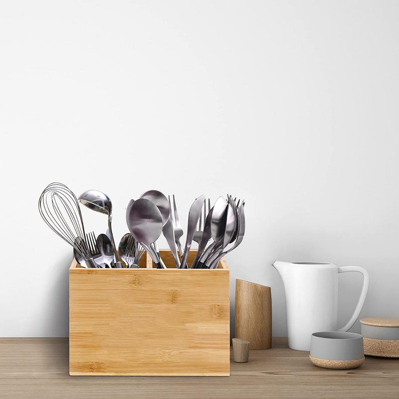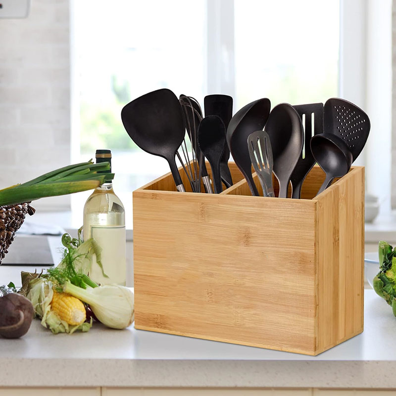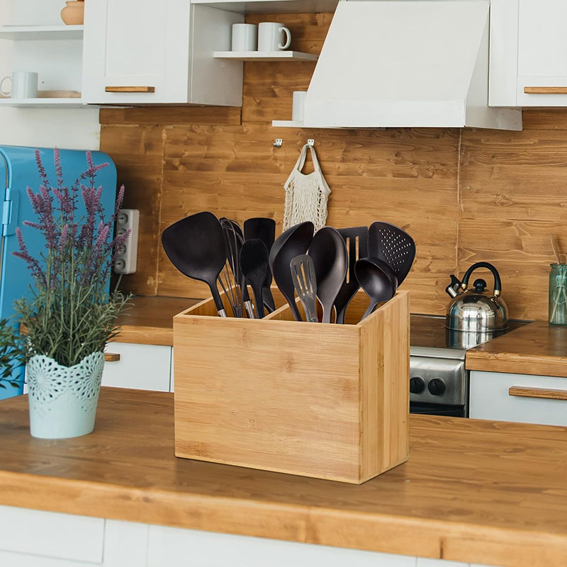 Space Saver for Kitchen - The Rustic wood Kitchen Cooking Utensil Organizer Box have 2 separate compartments to keep your kitchen utensils neatly in place. Use it for Knives, Spatulas, Tongs, Whisks, Ladles, Skimmers, Peelers, Bottle Openers, Silverware or any other kitchen gadget you want to keep within your arms'reach