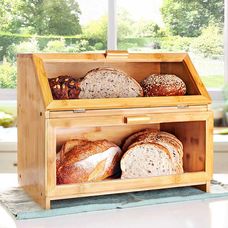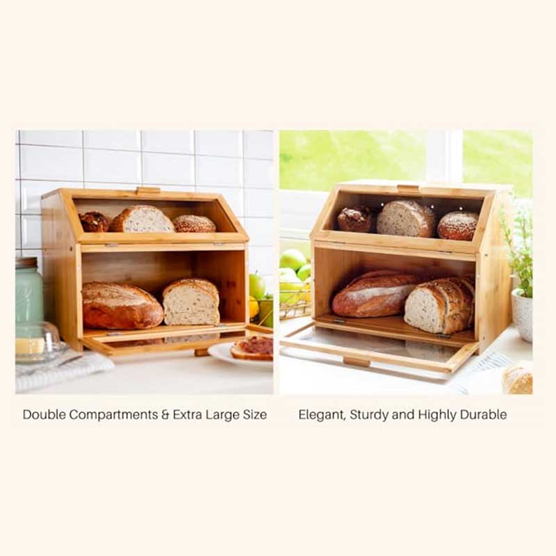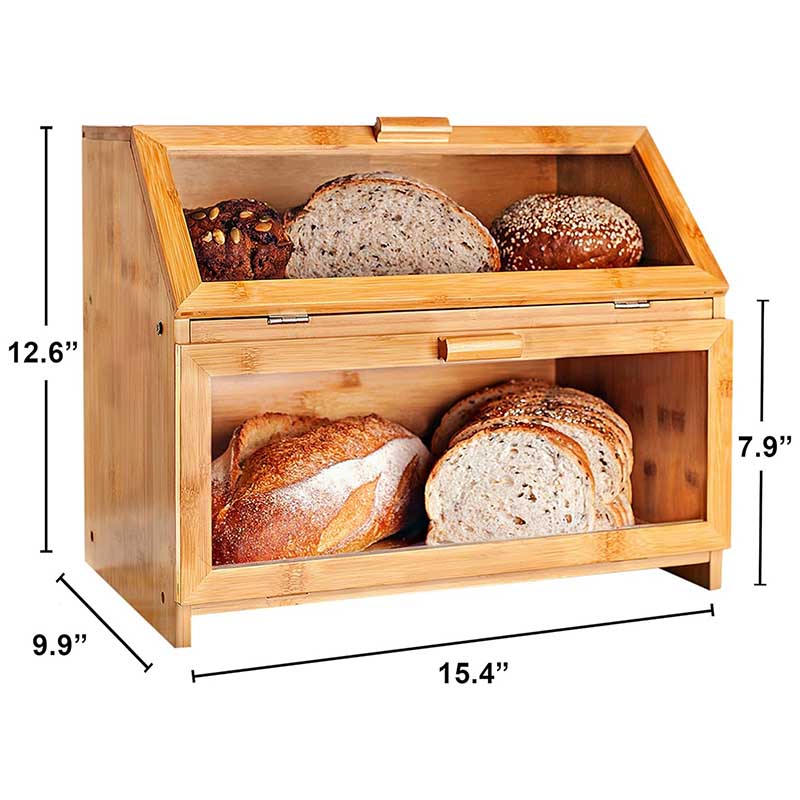 Food Grade Bamboo Bread Box : Double layer large bread box is made of natural high-quality bamboo wood, this bread container is sturdy and safe, providing a healthier storage environment for your food