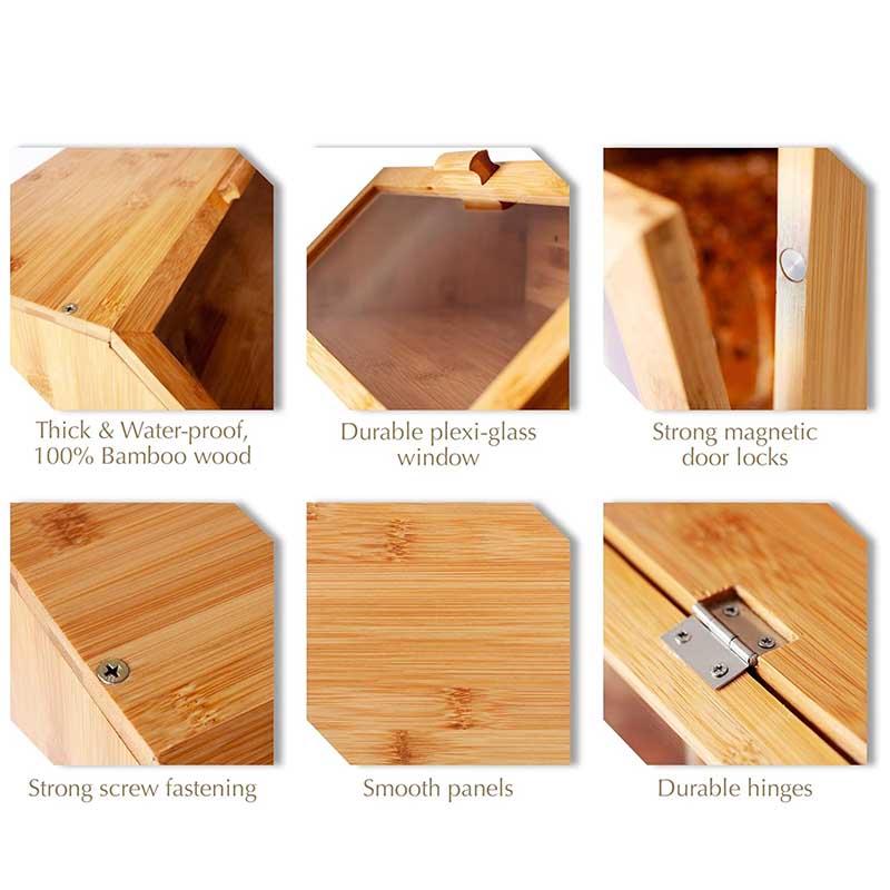 Sturdy, Stylish, Easy Assembly : Sturdy bread box made of bamboo wood and healthy material. This chic farmhouse style adds vintage style and warm elegance to your kitchen counter.