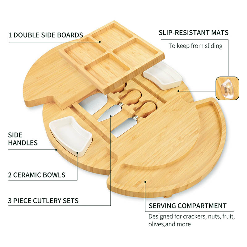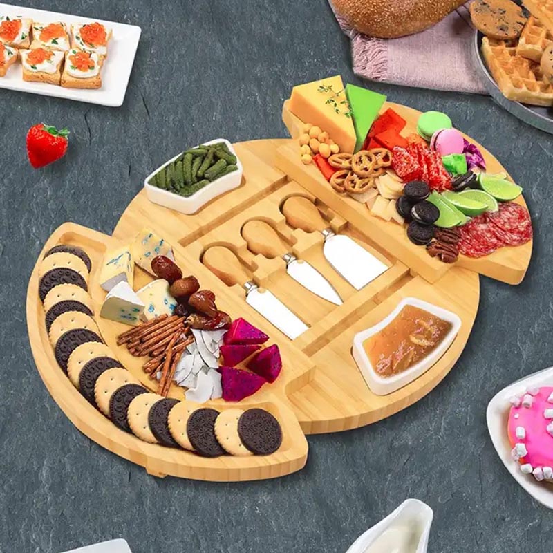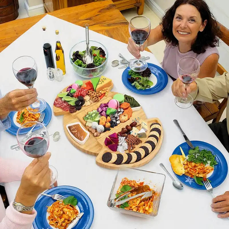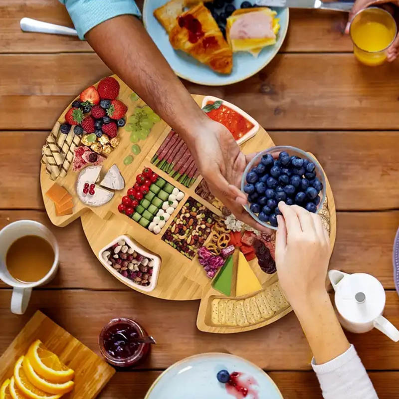 Charcuterie boards are an art form. You can design a unique and gorgeous platter for any festivity. Consider our bamboo cheese board a blank canvas on which you are the master artist creating the perfect ensemble of meats, cheeses, veggies, crackers, fruits, and chutneys to please any audience. Our cheese board open up a world of possibilities