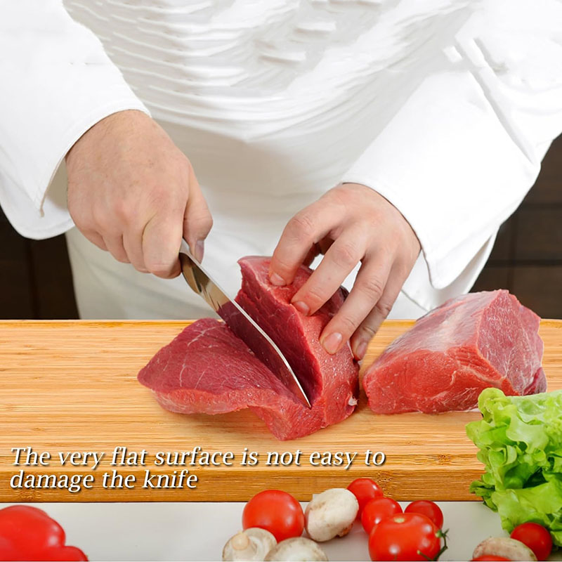 Deep Grooved Edges: The four-sided grooves surrounding the board are specially designed to capture and contain any excess juices or liquids from fruits, vegetables, or meats, keeping your kitchen clean and tidy.