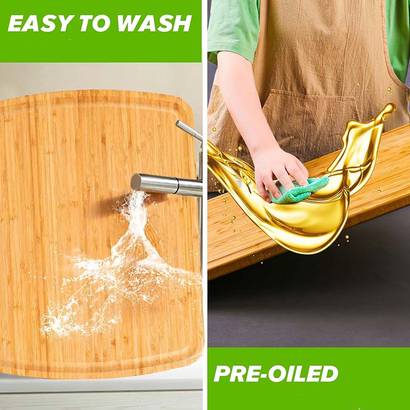 Extra Large Cutting Board: Our bamboo cutting boards offer plenty of room for all your cutting, slicing and dicing needs. Perfect for preparing feasts and serving platters.