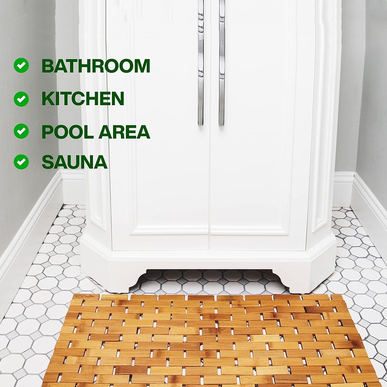 Great as a Rug Underlay – This bamboo bathmat also serves as an underlay for rugs. It elevates the rug platform to allow airflow, keeping rugs dry, fresh, and preventing odors, while adding stability and durability to your floor mats.