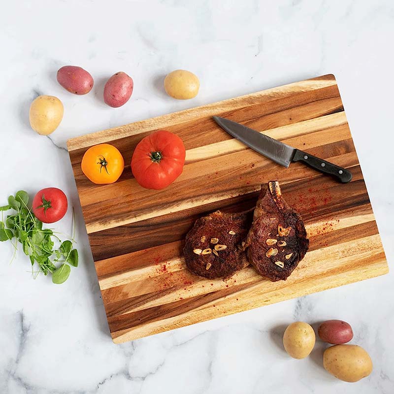 THICK FOR CHOPPING: Our acacia wood cutting board is thicker than most chopping boards in the market. The thickness makes it ideal for use as meat cutting board/ butcher block. This butcher block cutting board will be there with you for a long time.