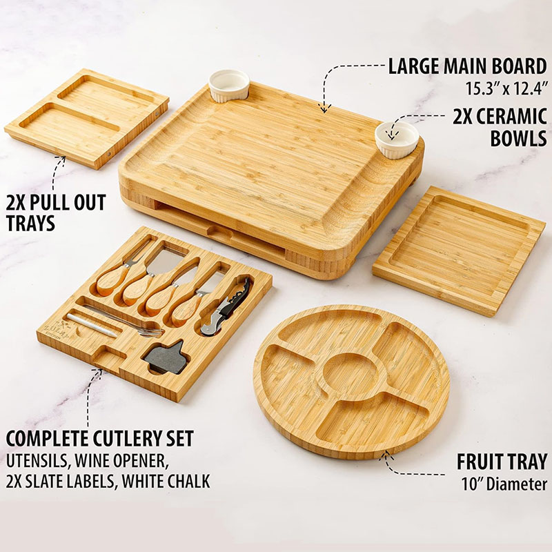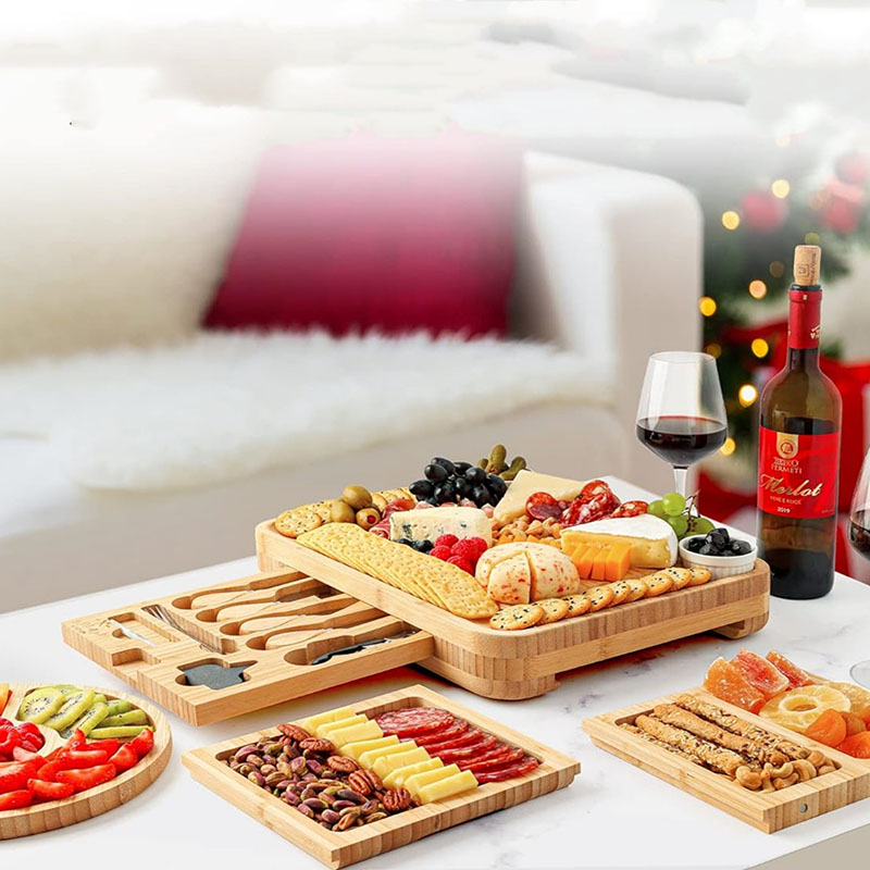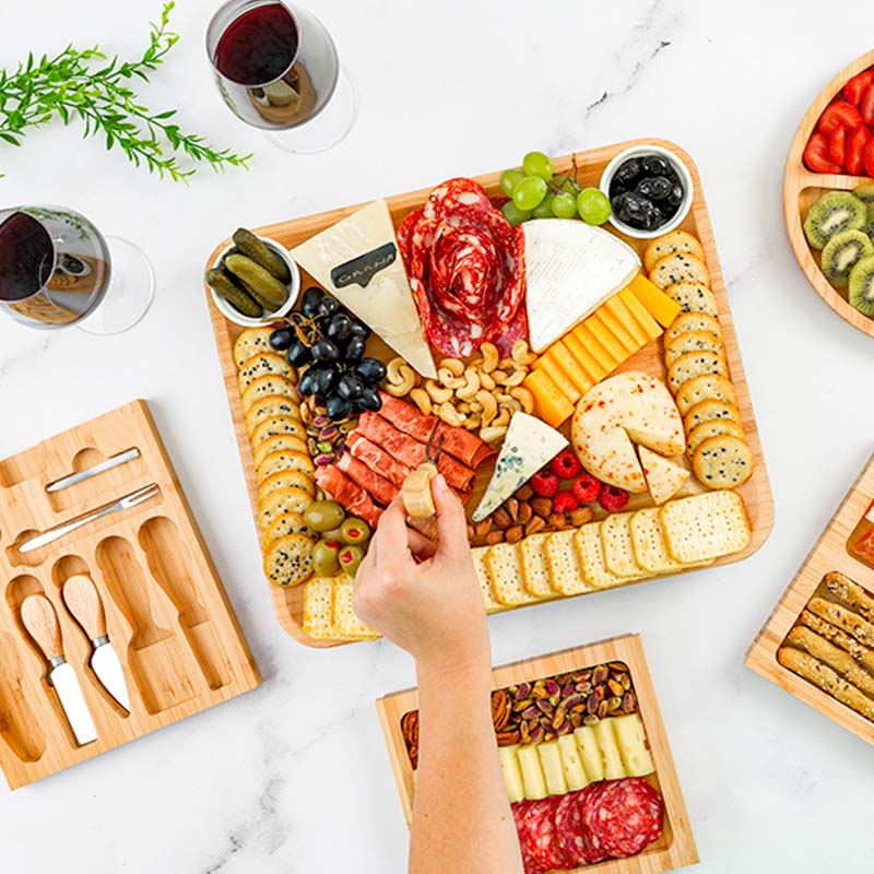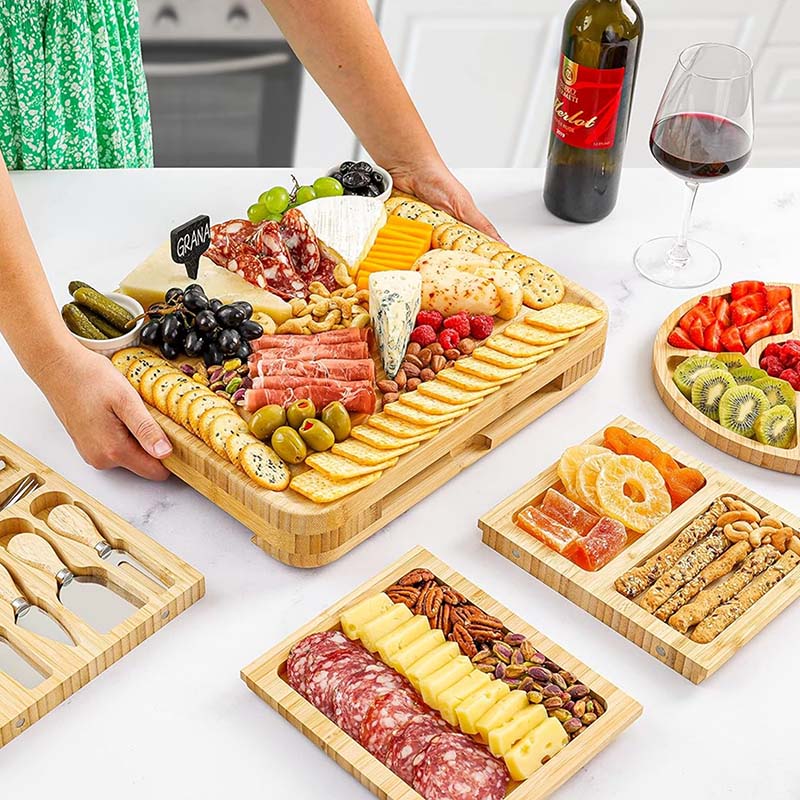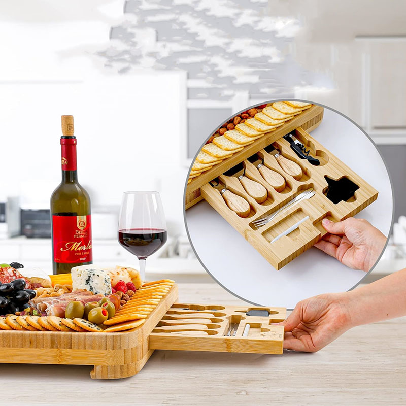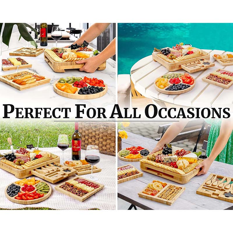 Natural Bamboo Material: We use high quality natural bamboo material to make the cheese board, sturdy and durable, the surface has been carefully multiple polishing process, presenting a smooth and flat texture, beautiful and easy to clean