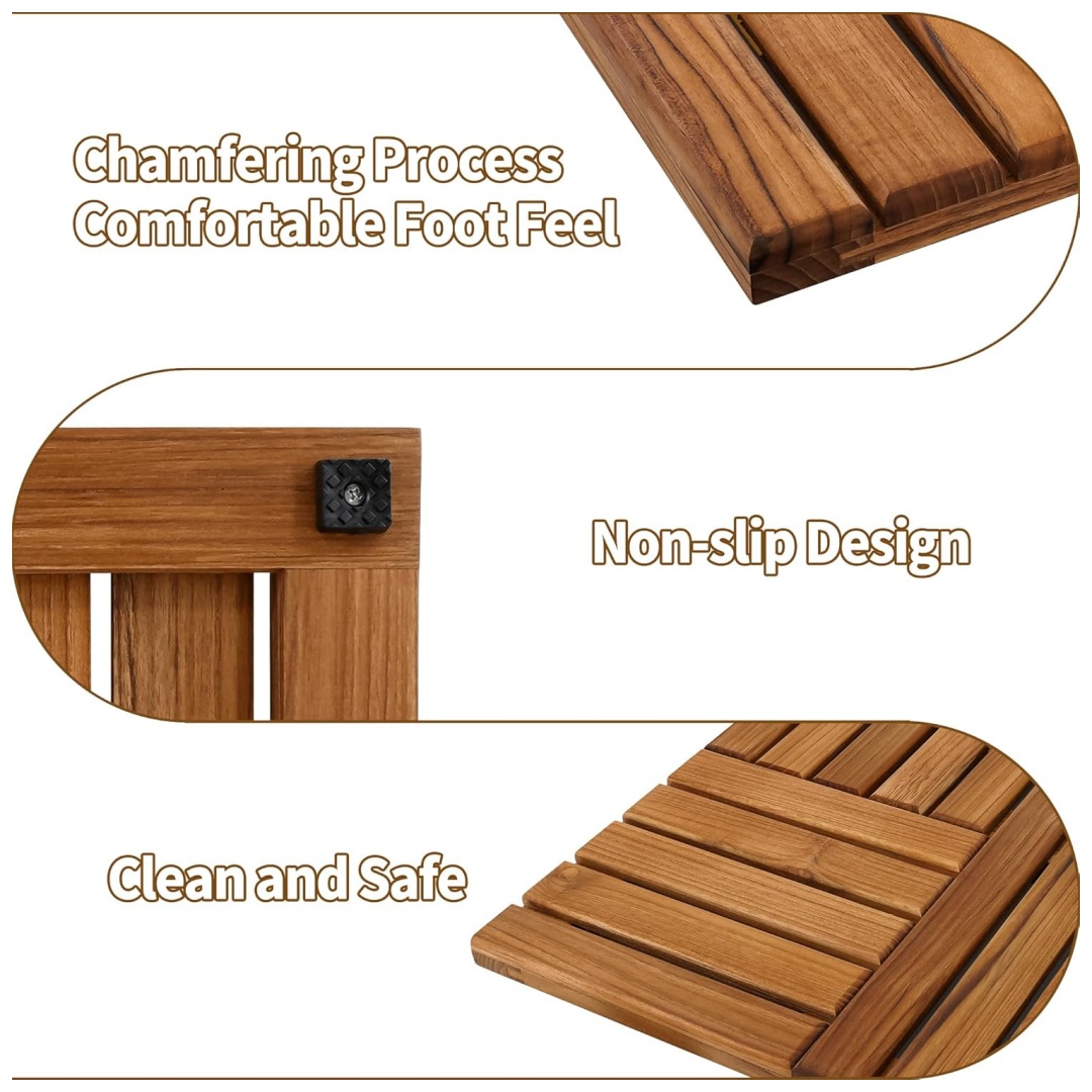 Upgrade Your Classy Bathroom: Premium teak wood bath mat looks much beautiful than other material made wooden bath mats. Teak bath mat makes your bathroom classier than ever before. Teak bath mat coms with non-slip pads underneath prevent the mat from sliding on wet floors.