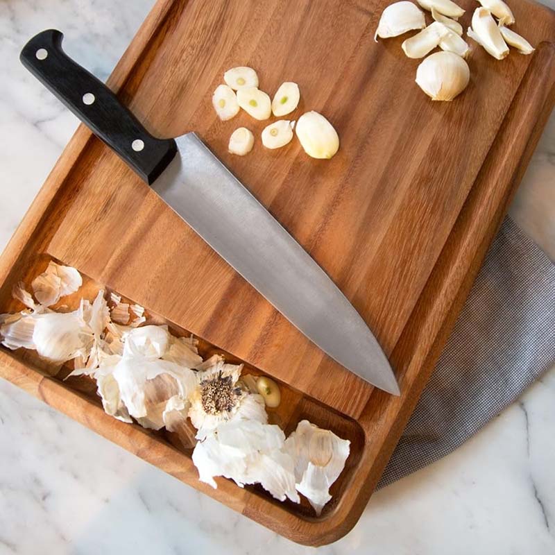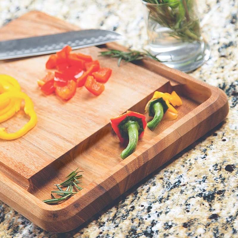 CATCH YOUR CRUMBS: This bread board features a convenient nesting crumb catcher that can be easily removed for cleaning.