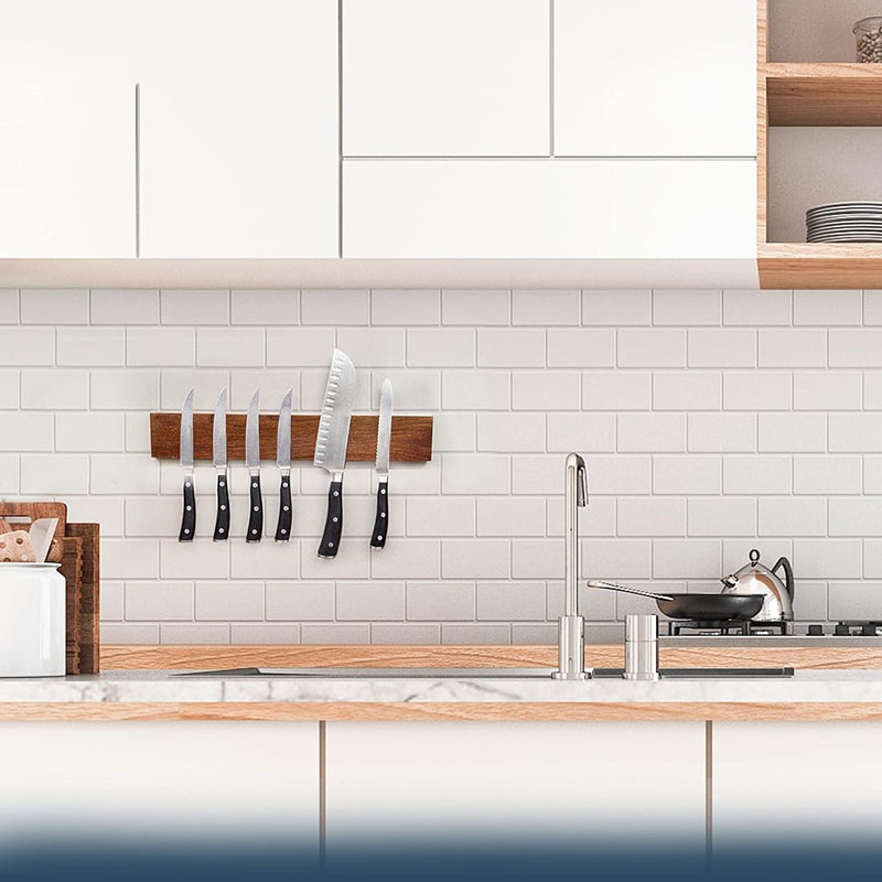 Looks great: Wood magnetic knife strips won't chip your knives, and make a stylish addition to your kitchen!