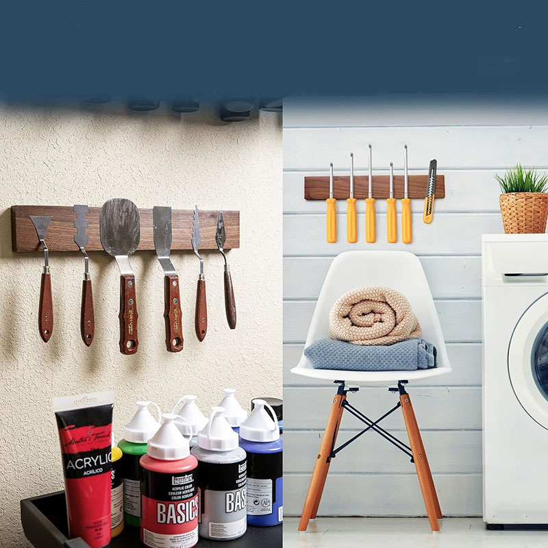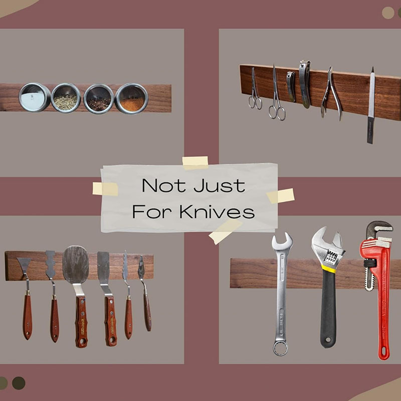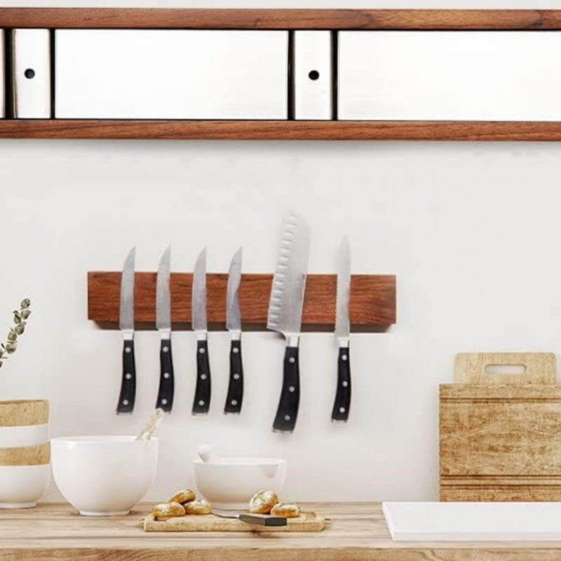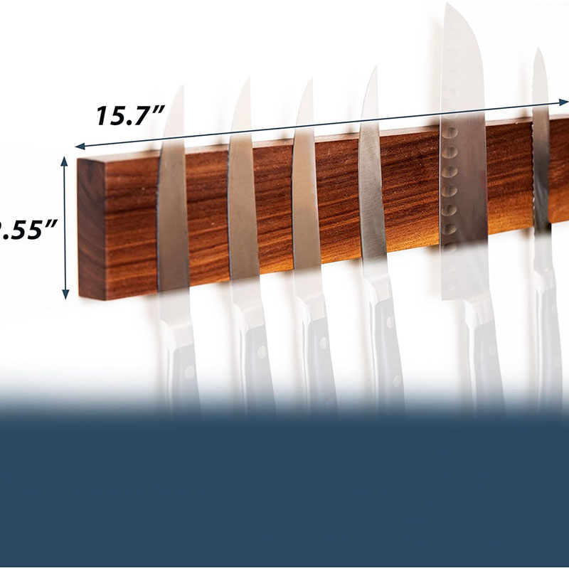 Very strong magnets: This magnetic knife holder has very strong magnets embedded in the wood allow even your largest knives to hang safely and securely!